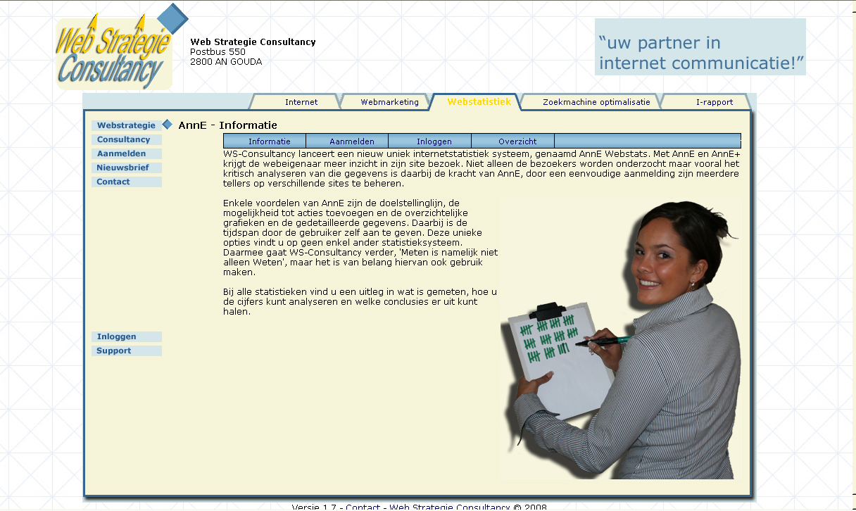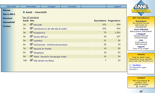 Via de website van WS-Consultancy.nl werd een compleet pakket aan tools opgebouwd, zoals AnnE+, een webstatistiek, ver voordat Google met Analytics startte.