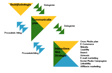 Naast de uitwerking van de strategie is het zaak de elementen van een bedrijf in te passen en aan te laten sluiten op de interactieve communicatie.